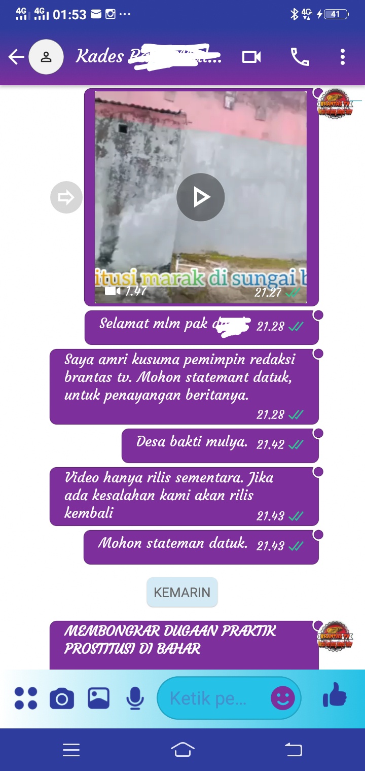 Sulthan kapuspenmas DPP LSM BRANTAS menyikapi hal ini, dikatakan nya aparat penegak hukum harus bekerja lebih extra lagi dalam mengungkap prostitusi di bahar, Kenapa Kades Terkesan Menghindar apa motif kades memblokir whatsapp tim kita, Akibat pemblokiran kontak whatsapp yang dilakukan Kades ini, menimbulkan Tanda Tanya Besar Bagi kami, Kami menduga kades Terlibat Dalam Prostitusi Yang marak Di wilayah desa nya", Terang Sultan.